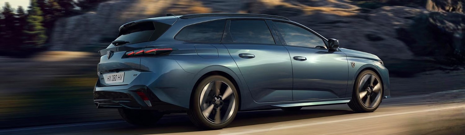 The Peugeot 308 SW blends elegance with practicality, showcasing a sleek silhouette, dynamic lines and a confident road presence. GT models feature a body-coloured grille, illuminated logo, Matrix LED headlights and signature daytime-running claws, while refined rear styling and LED number plate lighting add a modern, sporty finish.